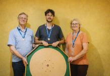 O jogo, tradicionalmente conhecido como Crokinole, é um jogo de tabuleiro canadense de destreza onde jogadores dão petelecos em discos de madeira, no qual o objetivo é acertar o centro ou derrubar as peças adversárias para somar pontos em um alvo circular.