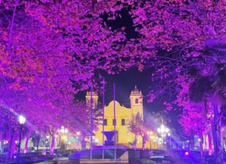 PRAÇA GANHA ILUMINAÇÃO ESPECIAL PARA O JUNHO VIOLETA DE COMBATE A VIOLÊNCIA CONTRA A...