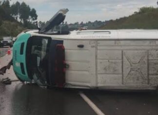 AMBULÂNCIA DE PALMEIRA TOMBA NA BR-277 EM BALSA NOVA E ENFERMEIRA FICA FERIDA