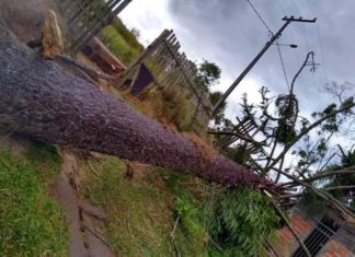 Ontem a tarde, ventos fortes provocaram queda de árvores, postes, estragos e danos, inclusive com destelhamento de casas.